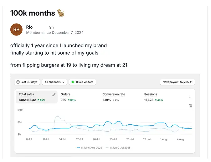 Able to quit their jobs after scaling their lifestyle brand past six figures per month.